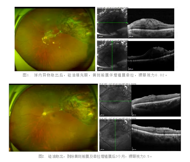 对于硅油填充眼,取出硅油是对前期手术成果的继承,取出后保持前期视网膜复位成果是关键。通常情况下,硅油填充后 3~6 个月取出硅油。然而,对于视网膜复位后粘附尚未稳定、增殖膜处于活跃期瘢痕尚未稳定的硅油眼,不合时宜取出硅油可能导致手术失败。