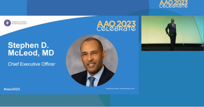 AAO的CEO Stephen D McLeod教授,一番慷慨激昂的致辞引来现场阵阵掌声。旧金山是AAO的大本营,本次年会大有回归根源之意。在会议上,眼科医师、教育工作者、临床工作人员、眼科从业者、立法者、监管机构、政策制定者荟聚一堂,所有人都在为实现AAO的目标努力,以期通过学术、教育、宣传、研究,始终如一地为所有患者提供最高标准的护理,以保护视力和赋予新生。Stephen D McLeod教授还介绍了AAO学院管理者的更迭和履新,期待未来新的领导团队团结一致,为AAO的使命不懈奋斗。