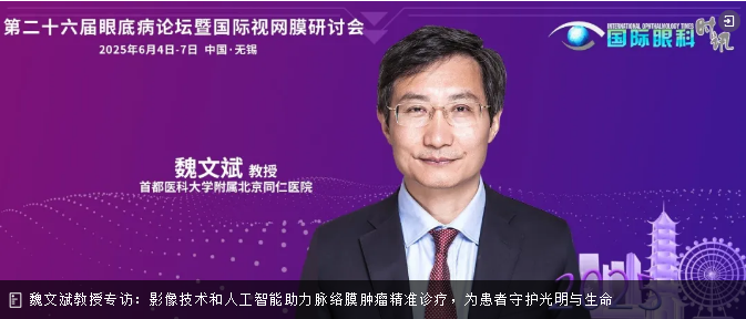 脉络膜肿瘤是发生在眼球脉络膜层的占位性病变,包括脉络膜黑色素瘤、脉络膜血管瘤和转移性肿瘤等,这些病变常具有相似的临床表现和影像学特征,分辨有一定难度,治疗也会因辨别有误而受到影响。在第二十六届眼底病学术交流会议暨国际视网膜研讨会(Retina China 2025)上,《国际眼科时讯》有幸邀请到首都医科大学附属北京同仁医院魏文斌教授进行专访,详细讲解脉络膜肿瘤辨别诊断和治疗的要点,并分享了该领域的研究进展。