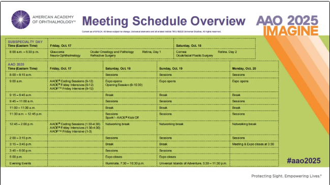 编者按:眼科领域的年度盛事——第129届美国眼科学会年会(AAO 2025)即将在充满活力与魅力的奥兰多盛大启幕!自1980年成立以来,美国眼科学会已发展成为全球规模最大、涵盖议题最广的眼科研究科学会议,拥有超过7000名会员。每届AAO年会都聚焦众多眼科和专科医师的议题,为全球眼科人搭建起权威的交流平台,开启一场汇聚智慧与创新的眼科之旅。