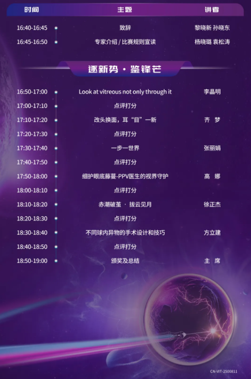 本次会议围绕玻璃体切除手术临床实践中的关键难点与热点问题展开深度研讨,议题直击临床痛点,兼具实用性与前瞻性,助力参会者破解诊疗困惑,提升技术水平:通过案例分享、思维碰撞、经验总结,为参会者提供可落地、可借鉴的解决方案,推动玻切技术在临床应用中的精准化与规范化发展。