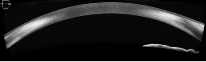 高清光学相干断层扫描(HD-OCT):周边角膜全层高反射,但厚度无异常。
