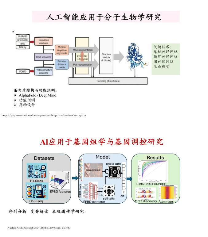 人工智能(尤其是大语言模型)正在重塑人机交互方式, 在我们的日常生活中似乎已经“无处不在”: 从2012年深度学习模型AlexNex在图像识别大赛中取得压倒性胜利,开启了人工智能新篇章,到2011年底OpenAI发布ChatGPT, 数亿用户第一次亲身体会到与人工智能的自然对话,真正将AI热潮推向了各行各业。人工智能在医学领域的应用不仅仅在影像学诊断、可穿戴设备医疗健康管理的等等方面发挥重要作用,在药物筛选、在多组学研究中也发挥重要作用。