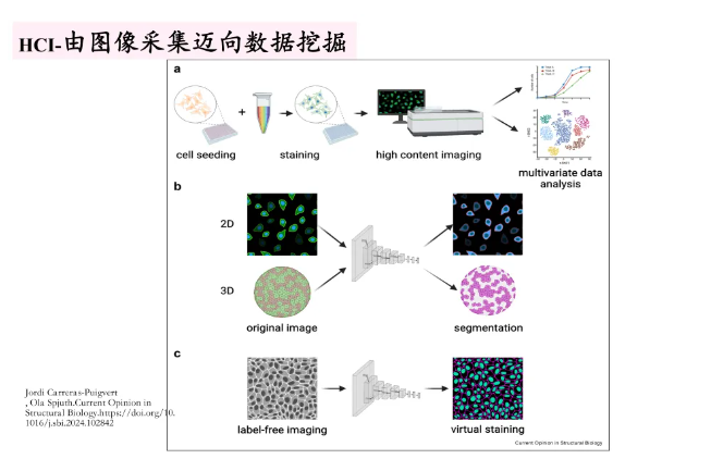 AI驱动的高内涵成像技术已成功应用于药物筛选,疾病的病理机制研究,细胞行为学分析以及生物学标记物发现等。全自动、高通量荧光显微成像系统,结合多参数定量分析技术,单次细胞实验中即可获得大量实验数据,特别是细胞中靶标分子的空间分布信息、单个细胞或细胞群的荧光强度、形态学以及细胞纹理等多参数定量分析等信息,也可鉴定和检测不同细胞群体的分类。AI驱动的HCI技术也已在类器官研究。同时“DeepStrain” —— 一个端到端的深度学习工作流,能够从常规的心脏电影磁共振(Cine-MRI)影像中,全自动、快速地计算出心脏容积参数和应变指标实现了HCI对于3D标本的观察, 在RNVU的研究中展现出巨大的潜力。