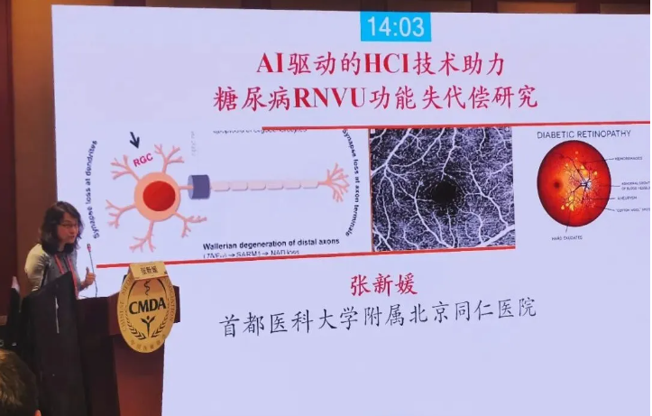12月21日,时值冬至,北京的岁暮序章方才写就,冬至的暖阳下微凉轻透。在盛大召开的中国医师协会眼科医师分会年会AI与代谢病相关眼病主题会议中,首都医科大学附属北京同仁医院的张新媛教授与中国人民大学人工智能团队的李锡荣教授,围绕人工智能在眼科临床与研究中的应用潜能,发表了特邀演讲并进行了深度剖析。 张教授提到,人工智能(尤其是大语言模型)正在重塑人机交互方式, 在我们的日常生活中似乎已经“无处不在,无所不能”: 从2012年深度学习模型AlexNex在图像识别大赛中取得压倒性胜利,开启了人工智能新篇章,到2011年底OpenAI发布ChatGPT, 数亿用户第一次亲身体会到与人工智能的自然对话,真正将AI热潮推向了各行各业。人工智能在医学领域的应用不仅仅在影像学诊断、可穿戴设备医疗健康管理的等等方面发挥重要作用,在药物筛选、在多组学研究中也发挥重要作用。在讲演中,张新媛教授围绕“糖尿病视网膜神经血管单元(RNVU)功能失代偿”从团队前期发现,到展望AI在RNVU研究方面的巨大潜力,紧扣AI与HCI技术应用于视网膜神经血管疾病的机制探索与临床转化,发表了“高内涵成像技术助力糖尿病视网膜神经血管单元功能失代偿研究”的讲演,为以人工智能作为驱动的RNVU注入了新的思路与活力。