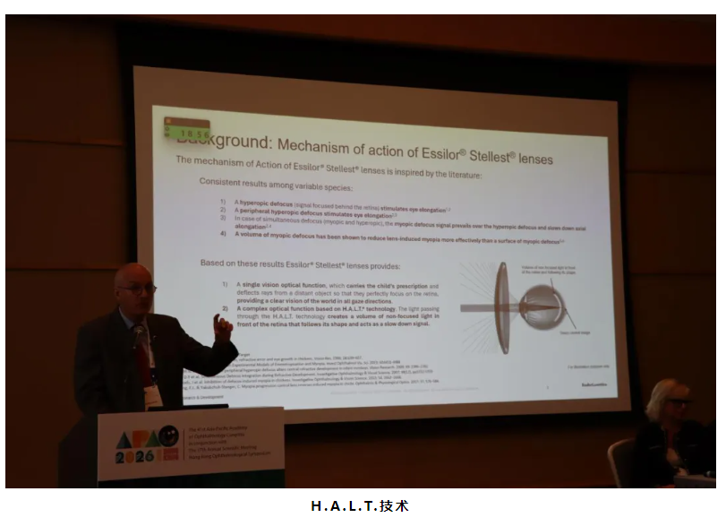 编者按:2月5日至8日,2026年亚太眼科学会年会(APAO)在香港盛大举办。众多顶尖专家,围绕眼科领域的前沿进展与技术创新,展开了全方位、深层次的学术交流与研讨。会议期间,依视路陆逊梯卡团队,以“2026及未来近视管理:临床证据与创新——从延缓近视发生到全面近视管理”为核心主题,携手该单元主席复旦大学附属眼耳鼻喉科医院陈志教授(Peter CHEN)、与美国休斯顿大学视光学院Mark BULLIMORE教授、依视路陆逊梯卡全球医疗与专业事务负责人Olga PRENAT女士、依视路陆逊梯卡研发部应用近视研究总监Bjorn DROBE博士,共同聚焦行业热点、深入探讨和构筑了基于实证的近视管理体系,为行业未来发展指明了方向。为呈现会议核心价值,本文特梳理总结此次会议精粹。