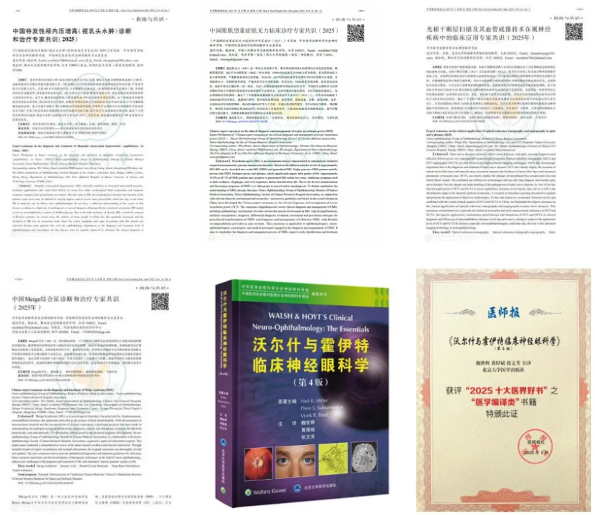 科研成果转化与前沿探索多点开花,专委会团队新增主持国家自然科学基金面上项目《NMO-IgG通过Müller细胞-小胶质细胞轴诱导视网膜病变的机制研究》,并承担重大疑难疾病中西医临床协作项目《视神经萎缩(H47.200)》,推动基础研究与临床应用深度融合。在成果产出方面,《眼眶疾病内镜微创手术关键技术研发与临床应用》项目荣获教育部科学技术一等奖,相关研究在国际权威期刊发表多篇高质量论文,经典译著《沃尔什与霍伊特临床神经眼科学(第4版)》(魏世辉、黄厚斌、张文芳主译)成功入选由《医师报》社主办的“2025十大医界好书”医学编译类榜单,其出版填补了国内领域系统性教材空白。