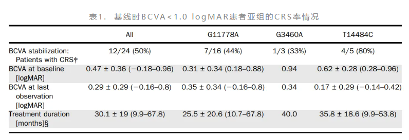 m.11778G>A突变:一线首选,尽早启动(症状出现≤1年),治疗周期至少24个月,以实现最大程度的视力恢复。