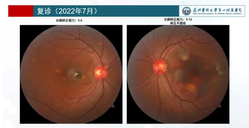 复诊:患者回家观察5个月后复诊,诉左眼视力无提高。