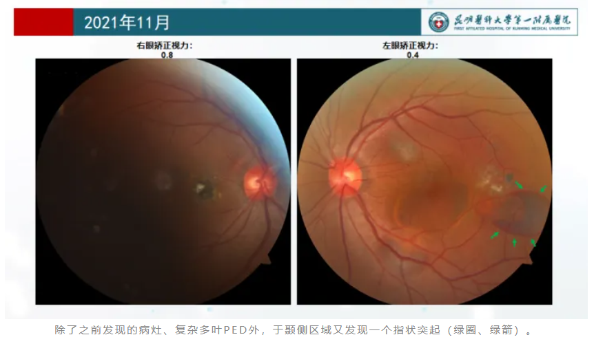 2021年11月,继续抗VEGF治疗,双倍剂量,期待有所转机。